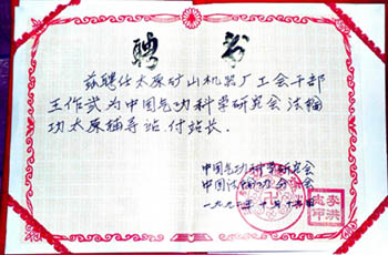 這是1992年10月李洪志到太原“講法布道”時,親自為“法輪功”太原輔導站副站長王作武(太原礦山機器廠 工會干部)頒發(fā)的“聘書”。這一“聘書”充分證明了法輪功是有組織的。 新華社記者張運攝(傳真照片)
