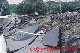 臺(tái)山公路嘉義縣路段因地震出現(xiàn)路基嚴(yán)重下陷。中新社臺(tái)北傳真