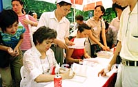 應邀來福州的香港著名企業家作家梁鳳儀今天上午冒著酷熱天氣,為福州讀者簽名售書。中新社記者 鄭祚聲 攝