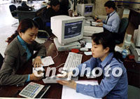 中國(guó)人民銀行于十一月十二日起下調(diào)境內(nèi)中資商業(yè)銀行美元、英鎊、歐元、港幣、加拿大元和瑞士法郎的小額存款利率。福建省各家商業(yè)銀行即時(shí)配合中國(guó)人民銀行的決定,做好相關(guān)的服務(wù)工作。圖為中信實(shí)業(yè)銀行福州分行的員工為顧客提供相關(guān)咨詢服務(wù)。中新社記者 劉可耕 攝