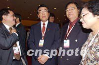 第四屆WTO部長級會議十二日在多哈舉行中國臺北加入世貿組織議定書簽字儀式。圖為中國臺北代表團團長林信義等人在多哈。中新社記者 錢興強 攝