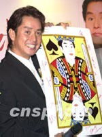 「港樂·Alan Live」演唱會18日在香港舉行記者會,「港樂」回饋一張以譚詠麟為肖像,并由全樂團成員簽名的撲克牌King,喻意他在樂壇的皇牌地位。中新社傳真 鄧慶樂 攝