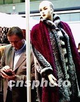 正在北京舉辦的國際裘皮革皮制品交易會吸引來自英國、澳大利亞以及中國各地的近兩百家廠商參展。圖為身穿中國裘皮服裝的模特和正在精打細算的國外客商。中新社記者 錢興強 攝