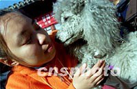 8日,國(guó)際愛(ài)護(hù)動(dòng)物基金會(huì)與北京慧靈弱智人士社區(qū)服務(wù)機(jī)構(gòu)聯(lián)合舉辦了特別的“醫(yī)生狗”探訪活動(dòng),此次活動(dòng)是“醫(yī)生狗”寵物療法項(xiàng)目走入社區(qū)在國(guó)內(nèi)的首次嘗試。圖為十九歲的智障少女景晨正在和醫(yī)生狗”菁菁”交流。中新社記者 張勤 攝