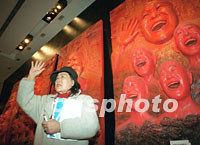 被稱為“中國藝術(shù)界重大事件”且頗有爭議的《2001年成都雙年展》,三月在北京中華世紀(jì)壇展出。圖為王能濤的浮雕作品《美麗生活充滿陽光》令人費(fèi)解。中新社圖 史利 攝