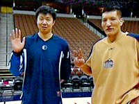 圖:王治郅和巴特爾在美國NBA賽場(chǎng)上對(duì)決