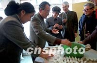 日本侵華時期,被強掠到日本三井礦山株式會社的中國勞工辛存者,三月接受中日雙方律師的再次調查后,中日雙方律師和中國勞工幸存者鄭振國(左三)一起包餃子。中新社記者 張勤 攝