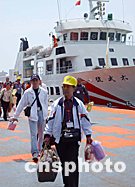 一百二十多名金門乘客十六日抵達廈門,成為開啟金廈定期航班首航之旅的見證人。中新社圖 李向陽 攝