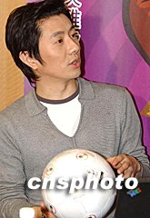 中國著名歌手鄭鈞,十六日晚在雅虎中國網為“2002FIFA世界杯聚焦”的幸運者抽取最后一張免費世界杯足球票。中新社記者 錢興強 攝