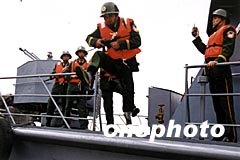 福建海警一支隊(duì)警員十七日在閩江口進(jìn)行反偷、私渡演練。通過演練,進(jìn)一步提高海警對處置海上走私、偷渡和搶險(xiǎn)救災(zāi)等突發(fā)性事件的快速反應(yīng)能力。中新社記者 劉可耕 攝