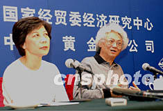 受國家經(jīng)貿(mào)委經(jīng)濟(jì)研究中心之邀,香港著名經(jīng)濟(jì)學(xué)家張五常(右)二十三日在北京釣魚臺大酒店作學(xué)術(shù)演講。中新社圖 武仲林 攝