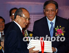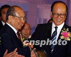 擁有一百萬潮藉人口、一百多個潮藉社團的香港,4月23日成立了“香港潮屬社團總會”, 主席陳偉男向出任榮譽會長的香港長實集團主席李嘉誠頒發(fā)證書。中新社記者 任晨鳴 攝