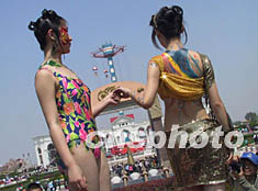 在1日開幕的朝陽國際藝術(shù)周上,京城一藝術(shù)團(tuán)體上演了人體彩繪秀,吸引了大量觀眾觀看。作者: 章永哲