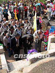 來自世界鄭氏宗親總會、臺北縣鄭氏宗親會、香港鄭氏宗親會等的鄭氏后裔,鄭氏宗親及海內外來賓近五千人,二十六日來到福建南安水頭鎮鄭成功陵墓祭奠這位民族英雄。劉可耕 攝