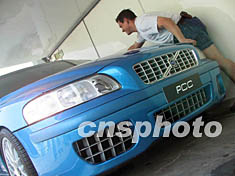 瑞典“VOLVO”(富豪)汽車公司的性能概念車“PCC1”,六月二日首次進(jìn)入中國。此車將在六日開幕的北京國際車展中亮相。圖為“PCC1”正在北京出關(guān)卸車。中新社記者 杜洋 攝