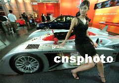 曾在世界24小時耐力賽上勇奪冠軍的奧迪R8跑車,與中國著名模特岳梅出現在2002年北京國際汽車展上,格外搶眼。趙振清 攝