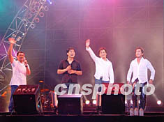 著名歌星周華健、齊秦、李宗盛、張信哲等昨晚在深圳為電話號碼升八位而放歌。圖為四大歌星齊齊亮相。作者:張國棟