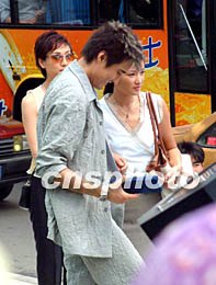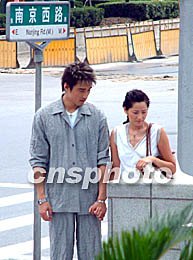 日前胡兵在上海南京西路上與著名藝人瞿穎一起拍攝由他制片和主演的影片《真情告別》。(井韋攝)