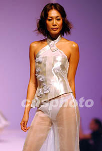香港名模7月9日在“亞太時裝設計師表演”專場上,展示香港時裝設計師周靜宜的最新春夏新裝。洪少葵 攝