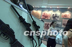 中國人民解放軍建軍七十五周年前夕,革命老區沂蒙山區成為“紅色”旅游的熱點。圖為身穿吊帶衫的時髦女郎參觀華東烈士陵園紀念館。作者:鄭萍萍