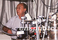 繼美、德等國科學家之后,中國科學家今年也成功實現了愛因斯坦七十年前預言的新物態——“玻色—愛因斯坦凝聚”實驗。圖為領導這一項目的中國科學院院士王育竹日前在上海實驗室介紹該項實驗。中新社記者 孫自法 攝