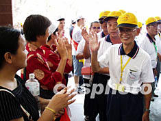 來自臺(tái)灣澎湖的媽祖信眾,在泉州天后宮會(huì)香之后,二十五日離開泉州返回澎湖。圖為臺(tái)灣澎湖媽祖信眾與泉州媽祖信眾告別。作者:華小銳
