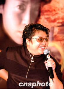 由奧斯卡金像獎得主鮑德熹導演、動作女影星楊紫瓊小姐領銜主演的影片《天脈傳奇》,日前在北京嘉里中心飯店舉行“亞洲新聞發布會”,該片歷經青島、西藏、敦煌和北京,耗資一億六千萬港幣拍攝。圖為著名歌手韓紅首次用藏語為該片演唱主題歌。中新社記者 錢興強 攝