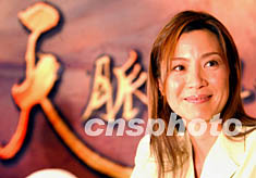 耗資一億六千萬港幣拍攝的影片《天脈傳奇》,日前在北京嘉里中心舉行新聞發布會,著名影星楊紫瓊領銜主演,導演由奧斯卡金像獎得主鮑德熹出任。該片將在八月一日在全亞洲同步上市。圖為楊紫瓊在新聞發布會上。中新社記者 錢興強 攝