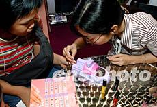 來自臺(tái)灣的“美甲器”日前在香港美容博覽會(huì)上尋找商機(jī),這種只需花幾分鐘就能在指甲上涂上美麗圖案的小機(jī)器,受到香港少女喜歡。潘索菲 攝