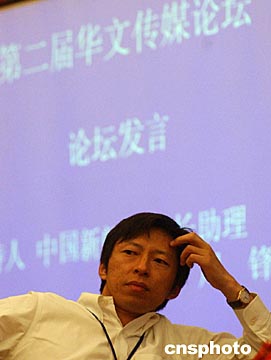 張朝陽在第二屆華文傳媒論壇上顯得有些低調(diào),剛開始并不愿意接受媒體的采訪。然而,這位中國門戶網(wǎng)站之一——搜狐的掌門人,還是給論壇帶來了不小的震動(dòng)。他的兩個(gè)新觀點(diǎn)更是引起媒體的關(guān)注。