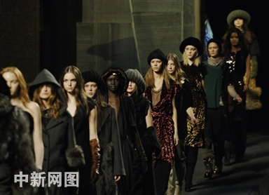 2006年2月6日,紐約時(shí)裝周,模特在展示Marc Jacobs設(shè)計(jì)的新款秋裝。華麗的細(xì)節(jié)使Marc Jacobs的作品總能奪目而不夸張。時(shí)尚的風(fēng)向已經(jīng)從對(duì)奢華永無(wú)止境的追求變成了現(xiàn)在的簡(jiǎn)單低調(diào)。設(shè)計(jì)師不再大面積使用皮草,而是將其作為點(diǎn)綴,使時(shí)裝展現(xiàn)出低調(diào)的奢華。