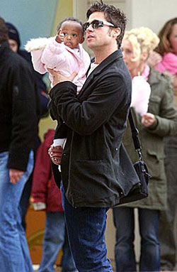 中新網(wǎng)2月23日電 據(jù)外電報道,提起好萊塢最亮眼的情侶布拉德·皮特與安吉麗娜·茱莉,最近兩人總是成雙如對,帶著兩個養(yǎng)子女到處游玩,貼心的皮特大大方方地照顧懷孕的女友,甜蜜場面羨煞旁人,毫不顧忌狗仔隊的偷拍。難怪在情人節(jié)前夕,英國有調(diào)查顯示,女士心中最羨慕的情侶就是皮特與茱莉。目前,兩人一直在法國游玩,經(jīng)常他們一家四口的照片刊登在報刊上,皮特抱著養(yǎng)女,茱莉牽著養(yǎng)子,像普通家庭一樣幸福得游玩,連路人都不禁駐足觀看這一對“俊夫靚婦”,羨慕之情溢于言表。 (人物雜志網(wǎng)圖)