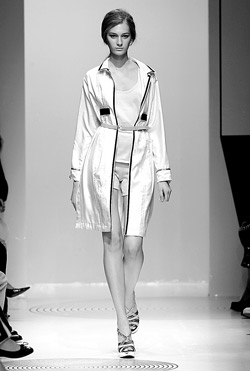時尚點評:這一季的透明質感的白衣大多擁有“浪漫”的特點,帶著地中海浪漫風情的同時還帶有上世紀七八十年代少女服飾的影子。另外,白色透明服飾的互相搭配也為性感加分,比基尼加上白紗的長外套,性感之極的同時和今年的休閑風也相得益彰。