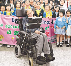 包括七十名殘障人士在內的二千五百名港人,在香港科技大學高等研究院的首場講座中,聆聽“現代愛因斯坦”史提芬·霍金闡述宇宙的起源;艚鹪诖饐柇h節中以自身經歷寄語香港市民,“盡管身體殘障,但思想卻不能與之停步,別人不會為你停下來.......[全文]