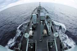 上午10時(shí)整,我們搭乘的南海艦隊(duì)某補(bǔ)給艦準(zhǔn)時(shí)起航。