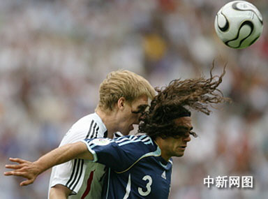 德國與阿根廷兩大足球豪門在世界杯歷史上兩次決賽相遇,各勝一場,第三度的交手今天在二00六年德國世界杯第一場四分之一決賽中上演。這場世紀大戰,開場并沒有上演精彩的攻勢足球,雙方打得非常拘謹,唯一一次亮點就是德國隊的施奈德助攻,巴拉克后排插上頭球攻門,可惜力量稍大偏出門柱。