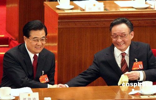 胡錦濤、吳邦國人大會上握手