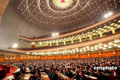三月九日,全國(guó)政協(xié)十一屆一次會(huì)議第三次全體會(huì)議在北京人民大會(huì)堂舉行。中新社發(fā) 盛佳鵬 攝