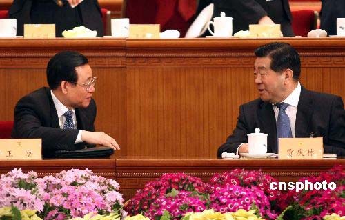 十一屆一次會(huì)議主席團(tuán)會(huì)議主持人賈慶林、主席團(tuán)常務(wù)主席王剛出席會(huì)議。