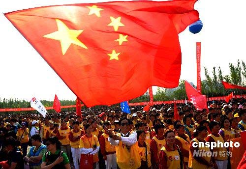 4月26日,在即將進(jìn)入奧運(yùn)倒計(jì)時(shí)100天的周末里,“微笑北京志愿奧運(yùn)共創(chuàng)和諧——2008春季北京國(guó)際長(zhǎng)走大會(huì)”在北京朝陽(yáng)公園舉行。中新社發(fā) 廖攀 攝