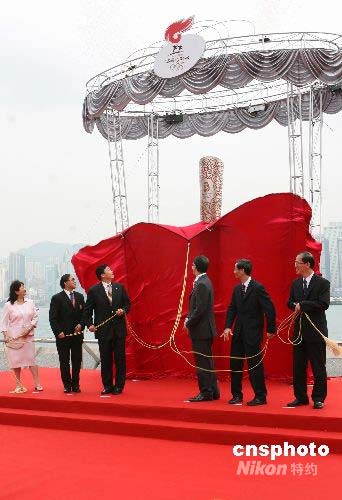 四月三十日,北京奧運圣火在奧運會開幕倒數一百天之際抵達香港,香港文化中心舉行盛大慶典,迎接奧運圣火。中新社發 武仲林 攝