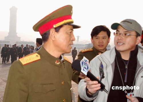 3月10日上午,十一屆全國人大一次會議在北京人民大會堂舉行第三次全體會議,臺灣記者仍舊最關注解放軍代表,緊緊圍追代表采訪。中新社發 劉萬強 攝