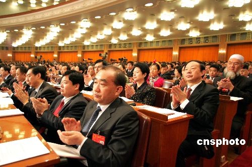 3月10日上午,十一屆全國(guó)人大一次會(huì)議在北京人民大會(huì)堂舉行第三次全體會(huì)議,全國(guó)人大代表聽(tīng)取最高人民法院院長(zhǎng)肖揚(yáng)作最高人民法院工作報(bào)告,最高人民檢察院檢察長(zhǎng)賈春旺作最高人民檢察院工作報(bào)告。出席全國(guó)政協(xié)十一屆一次會(huì)議的政協(xié)委員列席。中新社發(fā) 任晨鳴 攝