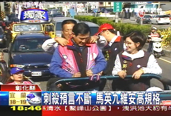 這一陣子馬英九所到之處,總是防彈公文包、防彈盾牌貼身護(hù)衛(wèi)。尤其是在上個星期六,馬陣營接獲通知有人要在嘉義刺殺馬英九,安全人員立刻進(jìn)入紅色警戒。