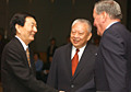 香港特首董建華、國際會計師聯合會會長雷尼·雷克爾等陪同朱镕基出席會計師大會.
