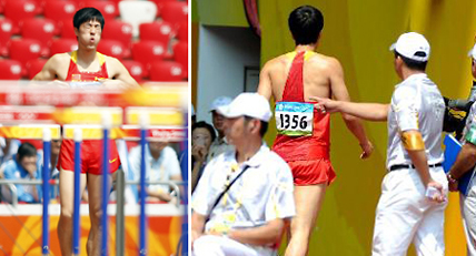 北京奧運男子110米欄第一輪比賽18日上午在“鳥巢”進行。衛(wèi)冕冠軍、中國名將劉翔因傷退出比賽,提前告別北京奧運會。[退賽經(jīng)過 視頻]