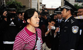 周正龍案今日正式開庭時,周正龍妻子羅大翠、兒子周松等未被法院允許進入法庭。十時許,周妻一度試圖強行闖進法庭,被法警阻止。周妻情緒激動,掩面而泣。周松在接受采訪時也不斷哽咽。[組圖]……