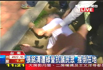 2008年10月21日,大陸海協副會長張銘清在臺進行學術交流到臺南市參觀時,被極端分子推倒在地;當張銘清準備乘車離開時,有人甚至跳上張銘清座車車頂狂踩,試圖阻止張銘清離開。