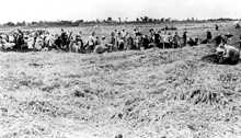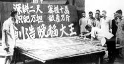 雞公山水稻畝產四萬八真相 2000年7月7日 14:09 ![]() 安徽省樅陽縣一塊號稱畝產1·6萬斤的 “衛星田”。田里的稻子是從各地移來的 ![]() 大躍進中,農民表決心。照片據《圖片中國百年史》 □張勝林(河南信陽) 1958年9月1日,信陽縣雞公山人民公社新集大隊放出河南省水稻畝產特大“衛星”:6畝6分3厘干部水稻試驗田總產324375·5斤,平均畝產48925·7斤。這顆大“衛星”升天后,新華社隨即發了消息,轟動全國。全省各級領導親臨參觀和總結經驗,9月9日《河南日報》第二版以“雞公山上紅旗插,水稻畝產四萬八”的醒目標題,對大“衛星”的組織施放作了詳細報道。 這個被大躍進狂風吹起來的水稻“衛星”,雖在當時被歌頌為信陽人民農業大躍進的偉大創舉,卻留下了一個謎:照“衛星”田里的水稻總產量計算,那么,這塊“衛星”田平均每平方米就得產出稻谷73斤。然而,73斤稻谷就是放在一平方米的空地里,也要堆出一定高度,何況稻谷結在稻穗上,直徑3毫米左右的稻莖又如何承受得了呢? 為了解開這個謎,我們對當年目睹現場的一些同志進行了反復調查訪問。在調訪過程中,這些同志不僅幫助我們弄清了雞公山水稻畝產“四萬八”的真相,而且訴說了雞公山人民當年吞下這個苦果的難言之苦。信陽縣越改越大的躍進規劃 1957年,信陽縣和全國一樣,勝利實現和超額完成了國民經濟第一個5年計劃,各條戰線出現了蓬勃發展的局面。然而,由于從上到下對成績的宣傳夸張,使一些干部的頭腦發熱,在指導方針上出現了急于求成的“左”的冒進。1958年2月26日,中共信陽縣委召開擴大會議,制定并通過了《信陽縣全面躍進20條規劃》,號召和動員全縣人民投入到大躍進的洪流之中。 1958年5月,黨的八大二次會議通過總路線:“鼓足干勁,力爭上游,多快好省地建設社會主義”,在信陽縣宣傳貫徹后,信陽掀起了大躍進的高潮。同月底,中共信陽縣委、縣人委對《信陽縣全面躍進20條規劃》進行了補充修改,把1958年全縣糧食總產量從原規劃的8·5億斤提高到“保證實現14億斤,爭取18億斤”(這樣驚人的數字,信陽縣不僅當年沒有實現,就是時隔30多年后農業年景比較好的1996年,全縣糧食總產量也才達到9·5億斤,為1958年規劃14億斤的67·8%)。同時,中共信陽縣委還提出“十年規劃,一年實現”的躍進口號。外地衛星的刺激 1958年6月,廣東省早稻畝產82525斤和河南省西平縣小麥畝產7320斤,這兩顆“衛星”消息傳到信陽縣后,信陽縣感到鼓舞和震動。7月5日,中共信陽縣委召開擴大會議,縣委提出:“必須認識到今年是農業生產大躍進的一年,不是要求增產幾成的問題,而是要翻幾番。因此,必須鼓足干勁,爭取更大勝利”。為了放出信陽縣的農業高產“衛星”,縣委要求“樹立敢想、敢說、敢作、敢為的前進思想,從而解放思想,破除迷信”。 7月,全國宣傳貫徹毛澤東主席關于把工、農、商、學、兵組成為一個大公社的指示,信陽縣聞風而動,在全信陽地區率先建立人民公社。7月22日,中共信陽縣委在雞公山召開擴大會議,決定撤銷全縣32個鄉、鎮及一個辦事處,成立12個人民公社?h委要求,各公社要借人民公社化的東風,更好組織農業生產大躍進,并示意試辦農業“衛星”田塊。 縣委擴大會議結束后,各公社開始籌劃具有本地特色的農業“衛星”,棉花、玉米、紅薯等都被列入“衛星”計劃之列。雞公山準備水稻“衛星” 在籌劃“衛星”時,地處豫鄂交界的雞公山人民公社黨委提出,淮河北的西平縣能放出小麥畝產七千三的全國大“衛星”,我們淮河南的雞公山為何不能利用我們盛產水稻的優勢,放出水稻高產“衛星”?只要有雄心,思想再解放,“衛星”定能升天。為了選準“衛星”的試點,公社黨委曾幾次召開會議研究,最終選擇新集大隊的一塊6畝6分3厘干部試驗田作為“衛星”點。 這塊試驗田在5月5日秧苗移栽時,采用了3×3(行距、株距各3寸)的密植法,加之向這塊試驗田投放的肥料較多,公社黨委因之認為,這為我們秋收放“衛星”奠定了基礎(經過實踐證明,3×3的密植法是一種違反科學的技術躍進,它不僅破壞了光合作用,而且也不利于農田管理,但3×3的密植法當時卻作為農業現代化在全縣推廣)。“調兵借將” 8月下旬,水稻已經基本成熟,臨近收割。雞公山公社黨委于8月下旬連續開會,研究如何放出水稻高產“衛星”。公社黨委認為,能否成功放出水稻高產“衛星”,不僅取決于黨委的信心,而且也取決于黨委一班人的統一認識和統一口徑(所謂統一認識、統一口徑,就是要求黨委每個成員不要對放水稻高產“衛星”持任何懷疑態度,“衛星升天”是全社人民的驕傲,也是全縣人民的光榮);而且在向上級匯報中,不準說三道四。這成為雞公山黨委在組織施放水稻高產“衛星”中的一條嚴明政治紀律。 放水稻高產“衛星”,必須要內定一個標準,經過黨委研究確定,試驗田里的水稻畝產量不低于45000斤。 這6畝多試驗田,到底能產多少斤水稻,社、隊干部以及試驗田的管理人員心里最清楚。但為了放出水稻高產“衛星”,不得不采取“調兵借將”之計。 8月28日晚,雞公山公社黨委在新集大隊召開放水稻高產“衛星”動員大會。黨委要求:參加放“衛星”的所有社員,要統一組織,所有放“衛星”的行動要聽從社、隊干部的指揮,不該問的絕對不準問,不該講的絕對不準講,如有說三道四按“右傾”論處。黨委還決定:8月29
