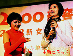 隨香港鳳凰衛視千禧之旅攝制組在四川采訪的吳小莉(右),元月二十日晚在成都被當地媒體評為“2000年新女性形象大使”。 作者:滿會喬